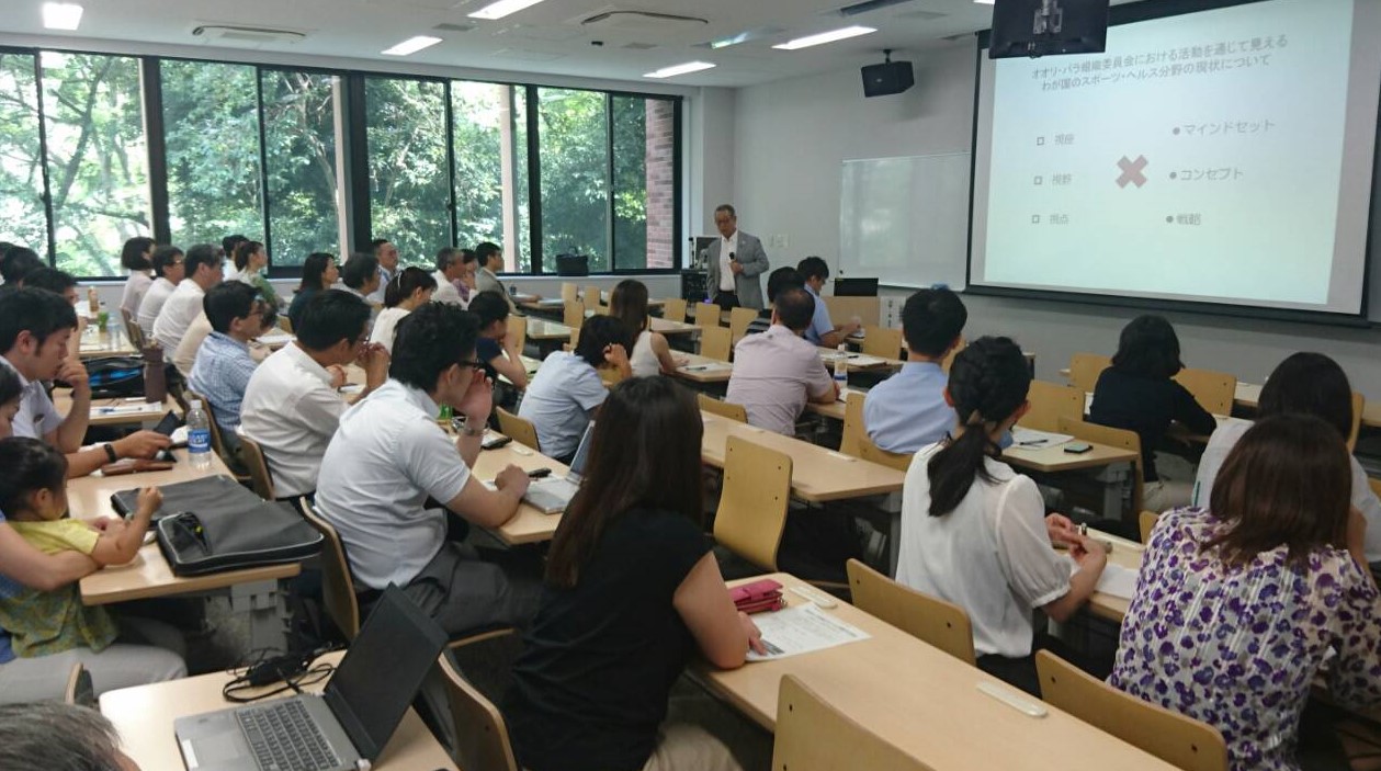 基調講演には河野一郎先生をお招きし、2020オリ・パラを契機にスポーツ・ヘルスが目指すべき方向性について、熱気あるご講義をいただきました。