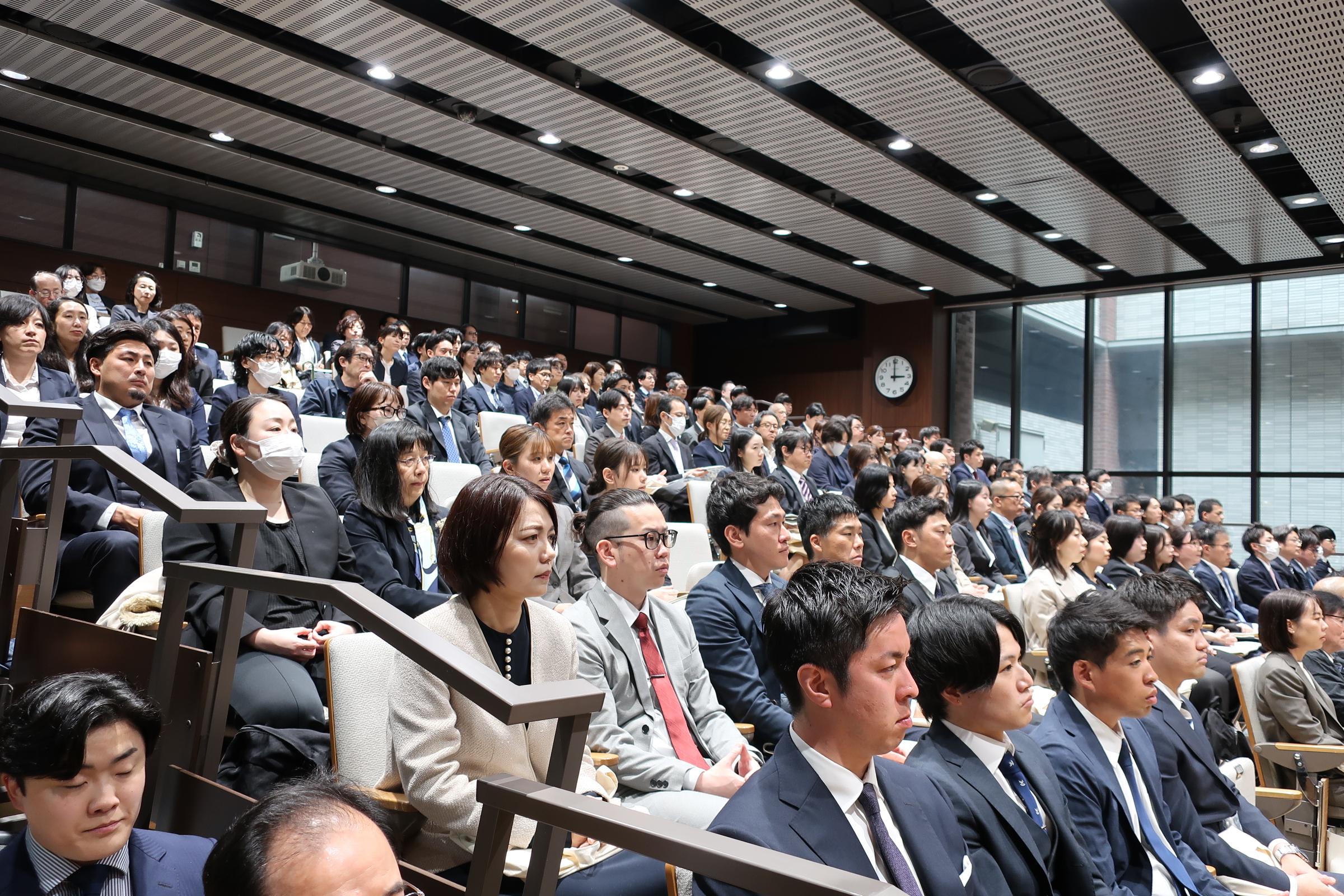 東京キャンパス全体で実施した入学式では、他の学位プログラムと合流し、社会人大学院で学ぶ意義を改めて感じ、学位取得に向けて決意をあらたにする機会となりました。
